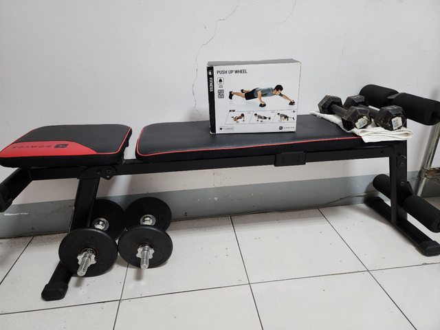 1.健身椅,多年前在迪卡農買的;久未使用,可正常使用(椅子上方的傳統啞鈴沒有要送