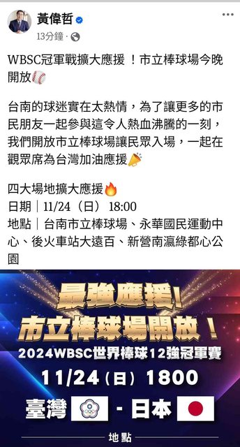 推 jiern: 台南市立棒球場的位置+12強冠軍賽 今晚可能爆滿 11/24 14:07