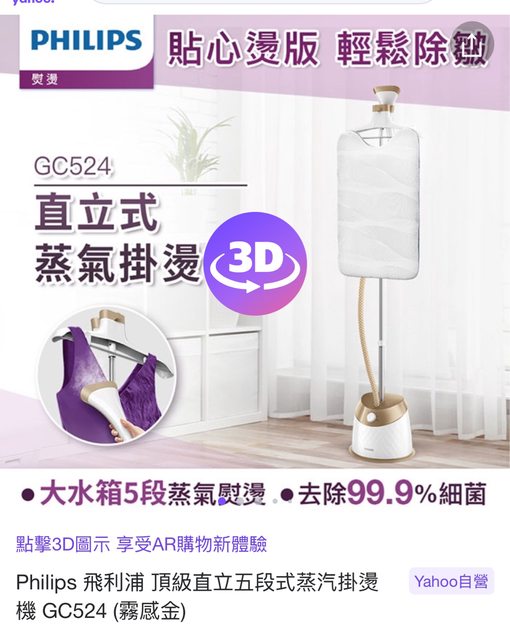 Philips 飛利浦 頂級直立五段式蒸汽掛燙機 GC524 (霧感金)