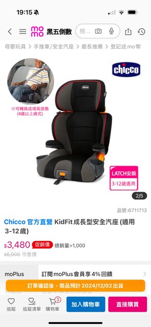 交易物品:Chicco KidFit 成長型安全汽座