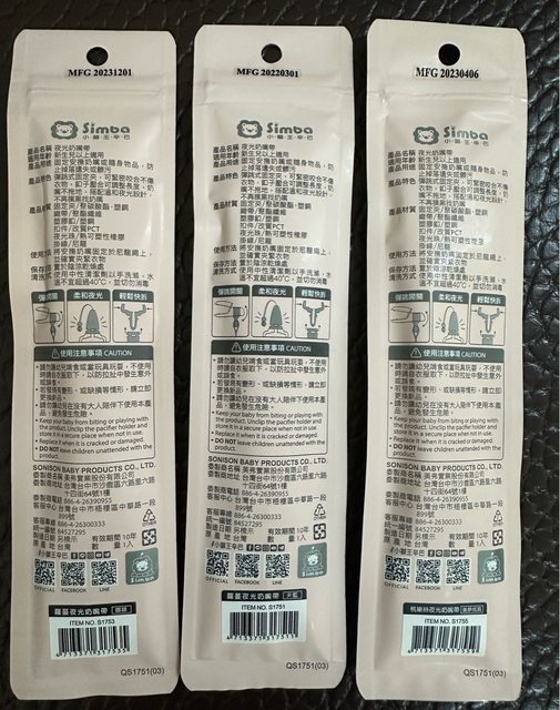 小獅王夜光奶嘴帶*3(印象是在大樹買的)/製造日期20220301、20230406、20231201/每