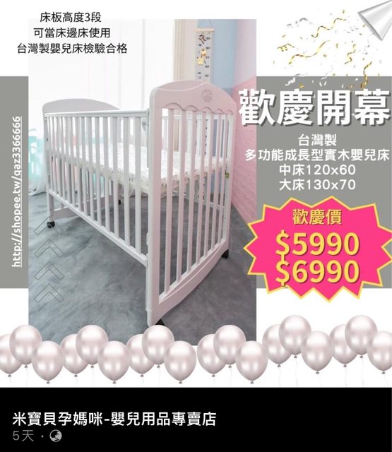 1.物品:二手台灣製嬰兒床大床(可拆)