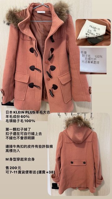 1. 日本KLEIN PLUS羊毛大衣/售200元