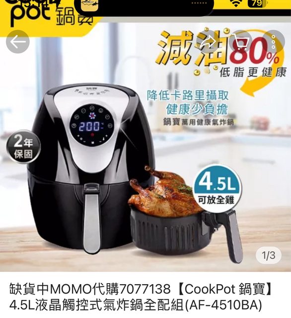 3. 氣炸鍋 鍋寶 AF 4510BA*1: $1,000