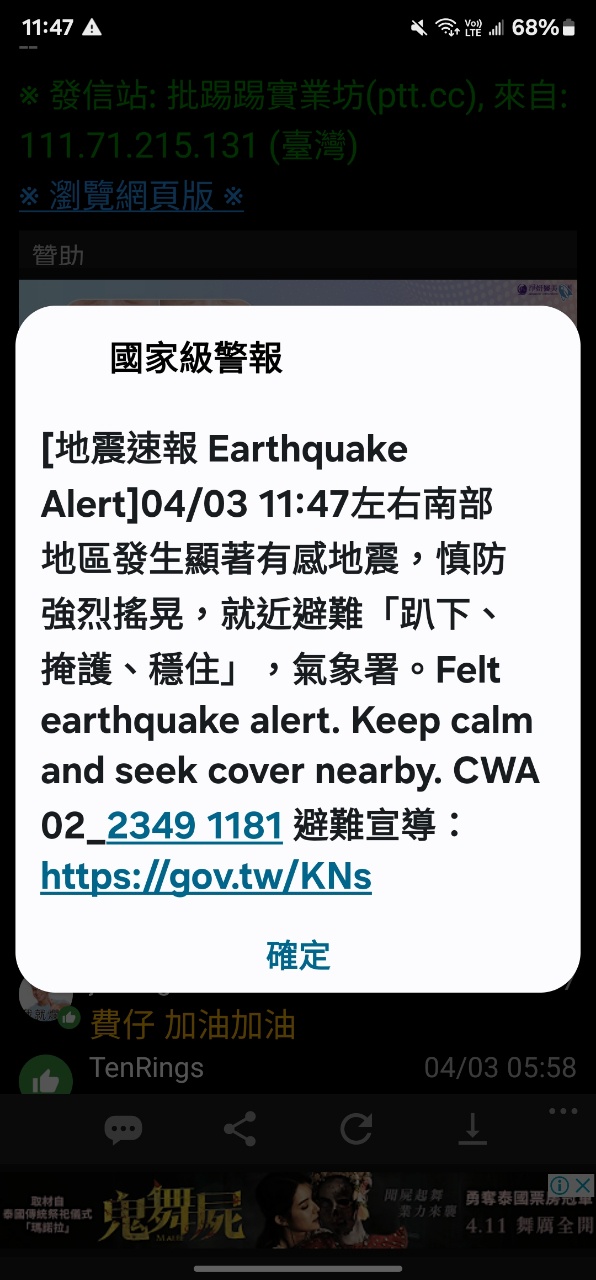 推 soshohe: 餘震來了 小晃 04/03 11:57