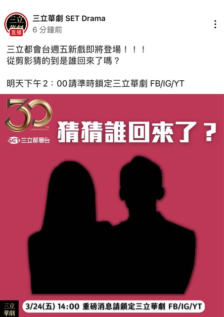 → christ20: 看剪影應該就是温跟隋,但三立目前都打算繼續重播或外 03/23 22:48