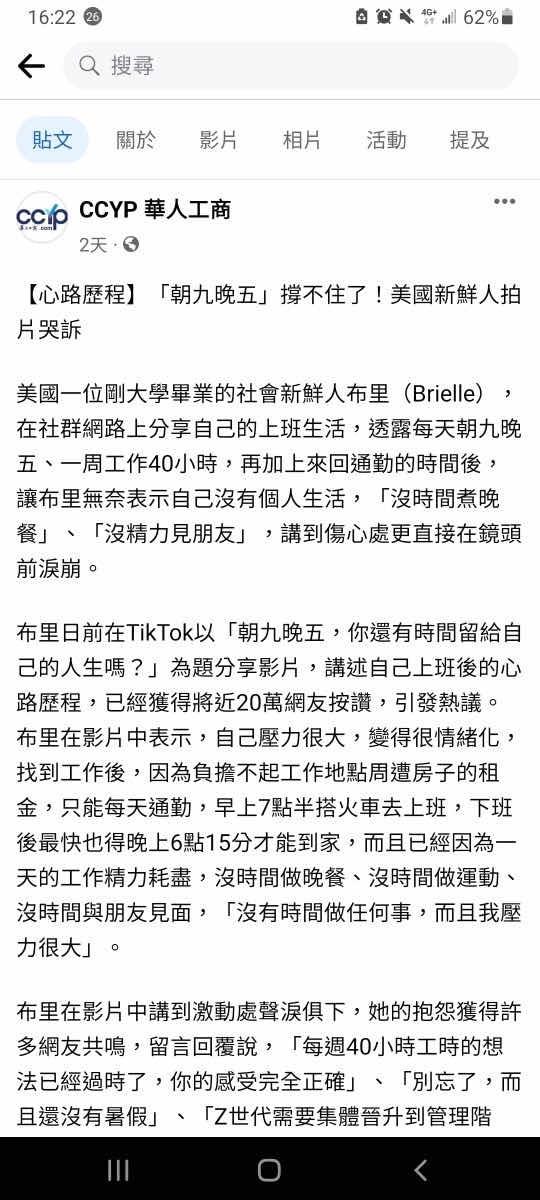 → d58974 : 然後在社交平台上傳一隻影片在哭,說朝九晚五的工作 11/03 09:55