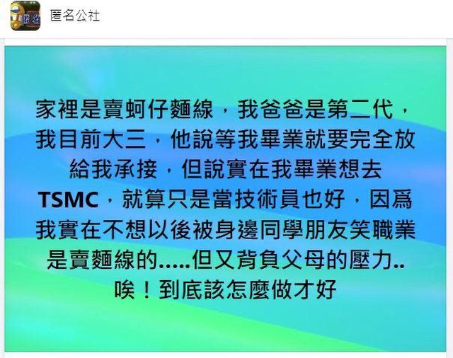 噓 pttano : 去台積ㄧ個月後離職,回家掛台積招牌賣麵線 12/09 16:47