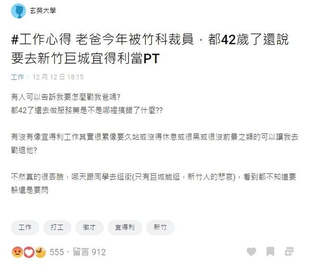 推 leon1757tw : 玄奘大學生+爸爸42歲 嗯… 12/15 01:20