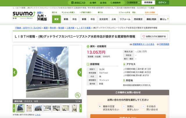 還要給屋主26.1萬日圓禮金。截自當地租屋網站