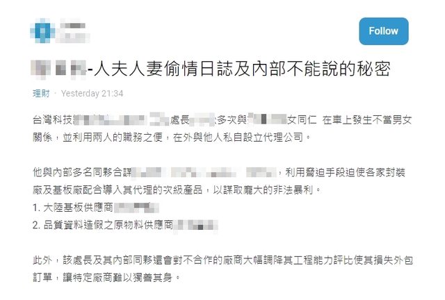 推 cka : 重點一直不是外遇 而是外面開公司用次品賺公司錢 02/19 19:51