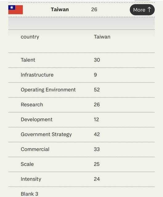 則台灣的基礎建設(Instrateucture)跟開發能力(Development)還不錯