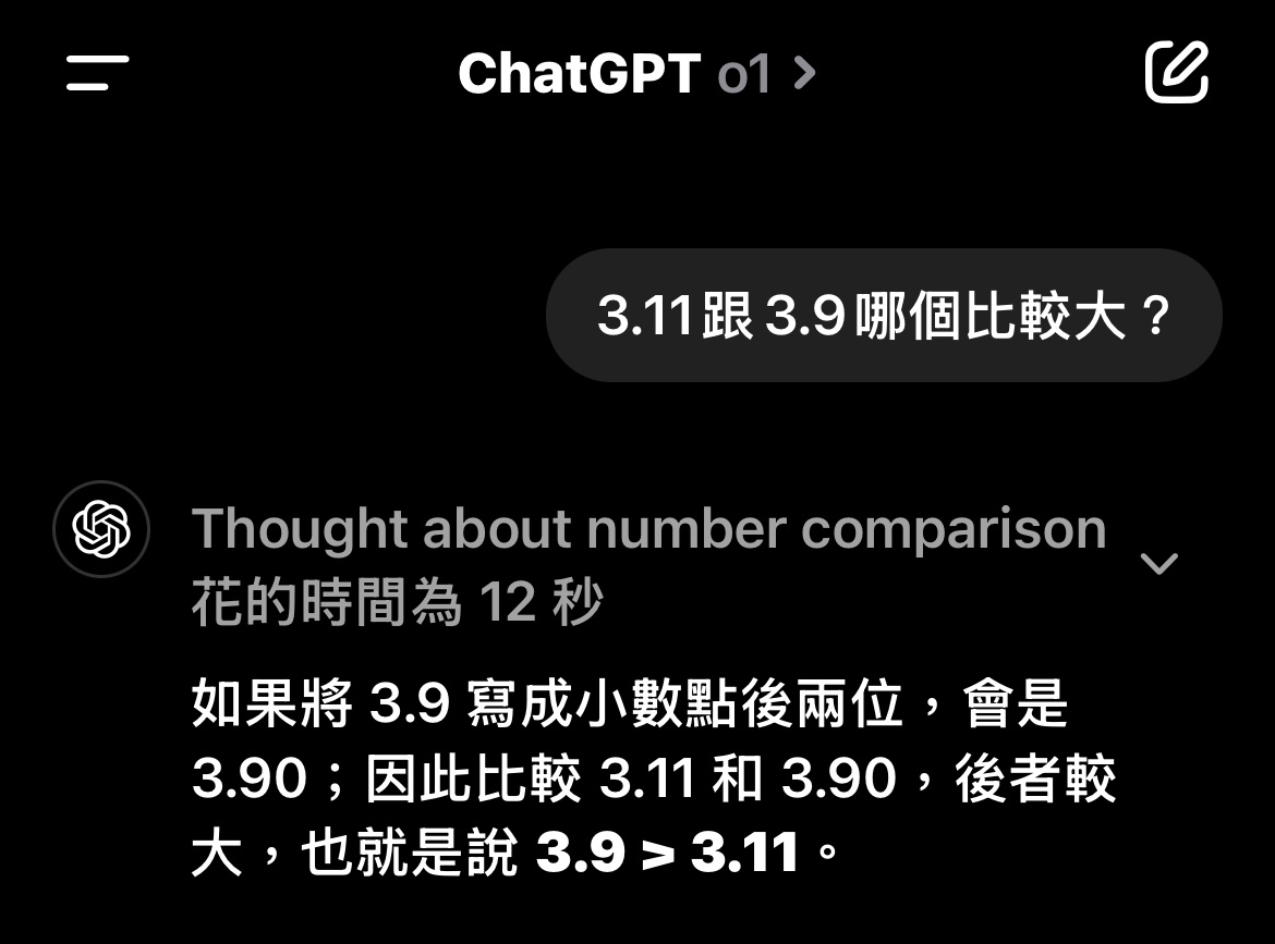 噓 NexusPrime : 我問ChatGPT 是 3.9 > 3.11 49.229.180.140 01/29 12:51