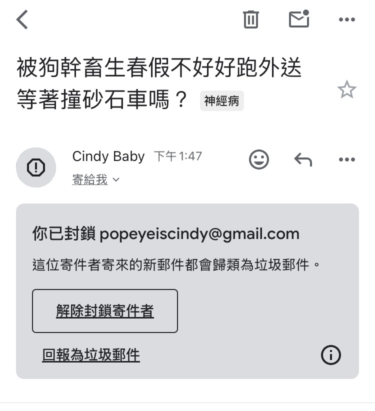 → luckyalbert : 到底誰家養你這畜牲孽種鬧個不停 49.218.142.115 04/04 11:15