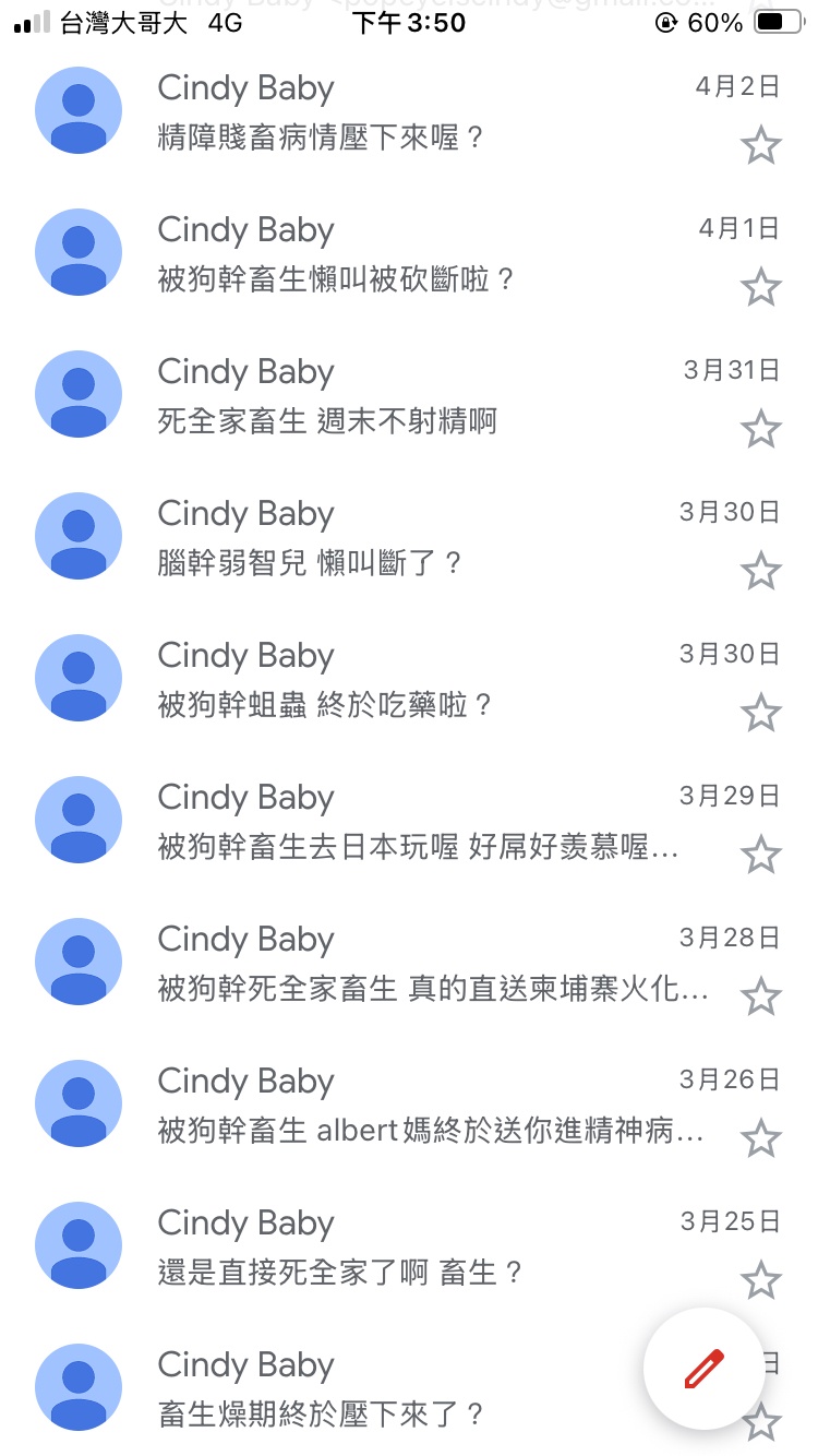 → luckyalbert : 團的畜牲孽種少來煩我,不然你自己 101.12.146.133 04/05 01:27