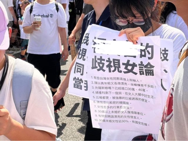 剛剛看昨天716凱道遊行的照片 看到一位女生拿著歧視女論 https://i.imgur.com/c3IBX4y.jpg