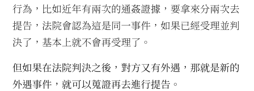 → etiennechiu : 法院判決後又外遇,算新事件,可再 1.200.162.69 09/03 17:36