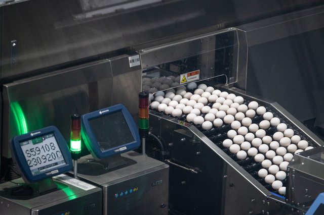 善,幾十年來都以洗選日期後大約一個月為有效期限。圖為準備進入洗選區內的雞蛋。(攝