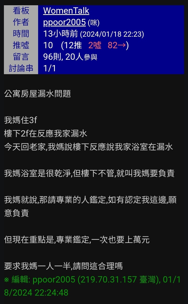 → Agneta : 你家漏水就是你家全出啊180.217.147.217 01/19 11:45