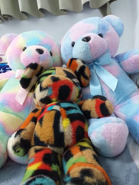 回家後擺放時突發奇想,把兩隻熊熊跟我原本就有的娃娃擺在一起