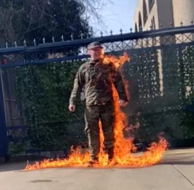 點燃身上的易燃性液體,並且在以色列大使館面前