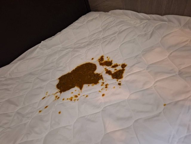 話說這張被玷汙的床墊有沒有人要,可150元賣XD
