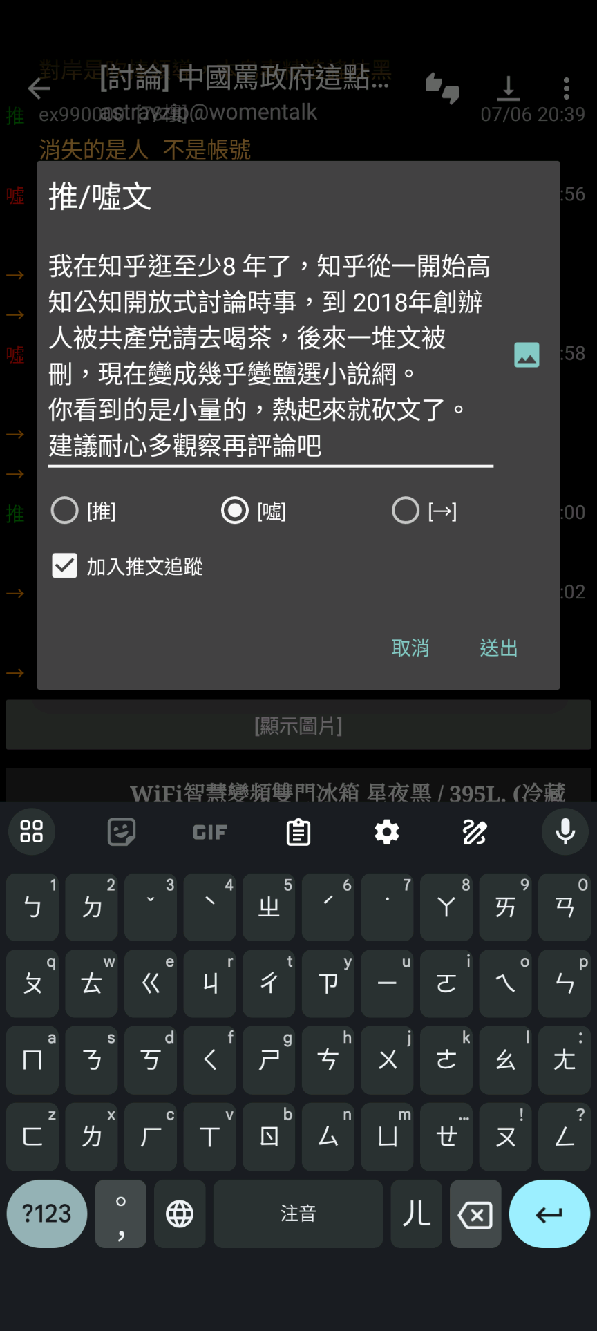 → ejru65m4 : 他們允許你罵 就是事情大條 有人要 223.137.84.239 07/07 06:46