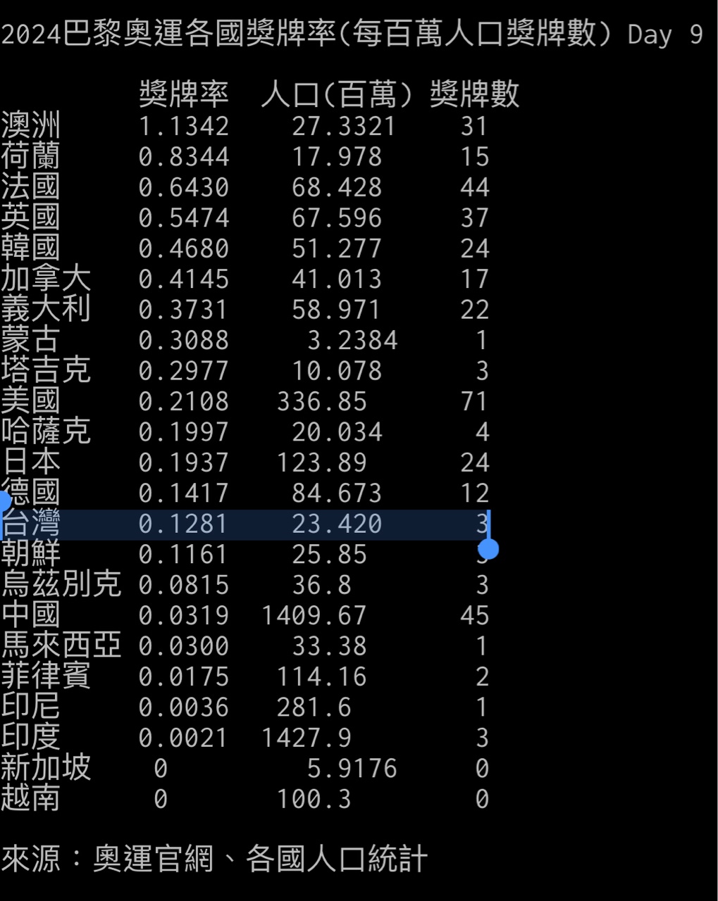 → phoenixzro : 應該是全球人口占比和全獎牌占比才 202.39.33.13 08/07 16:19