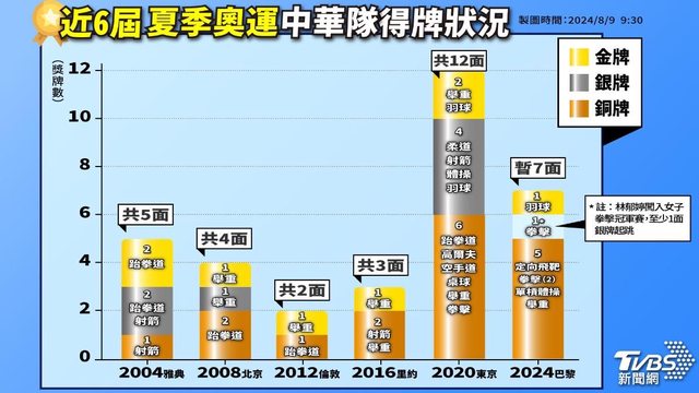 近6屆夏季奧運中華隊得牌狀況。(圖/TVBS)近6屆夏季奧運中華隊得牌狀況。(圖/TV