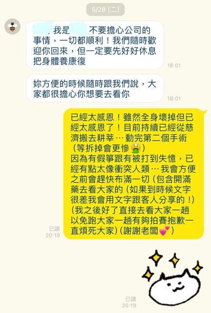 直到五月底、六月初,微微恢復智力的時候常常傳訊息給朋友,但完全在亂打字。當時的