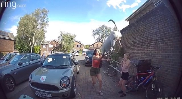 一位母親為了拯救她的家庭狗“奧茲”(Ozzy),當牠從他們英國家的屋頂跳下時