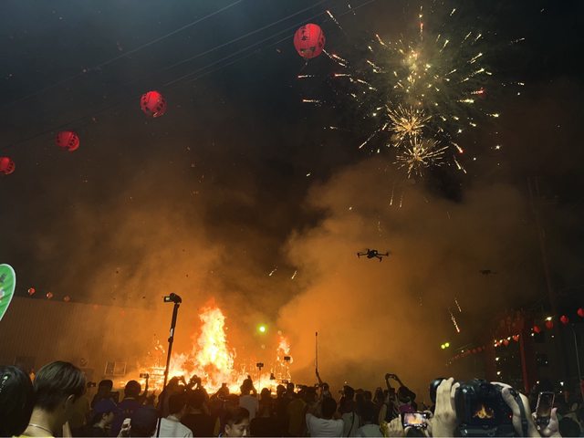 嘉義民雄大士爺凌晨火化升天,煙火發生意外膛炸、低空爆炸。記者黃于凡/攝影