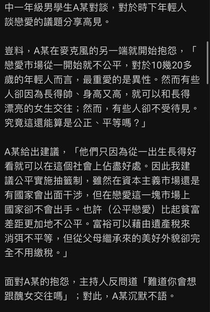 應該要強制配對男女 結果主持人問他說