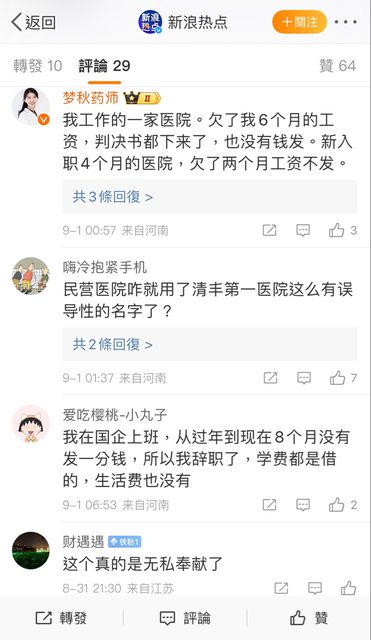 標題[新聞] 8個月只發千元人民幣!河南醫師集體討薪
