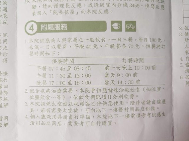 住院4天3夜,早晚三餐都會有護士過來給藥量血壓巡房,辛苦他們了。