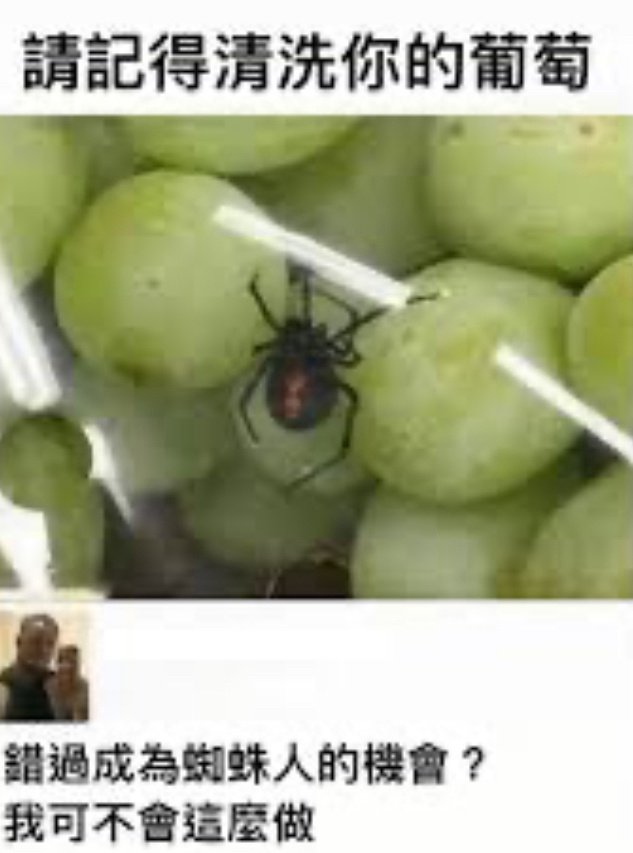 推 vamwill : 綠葡萄上面會有綠蜘蛛喔 42.72.210.35 03/09 18:05