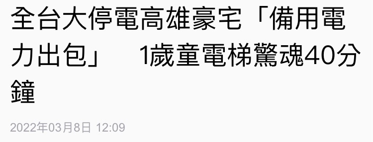 maye : 室內停電,但公共電梯能動,但管理 42.75.2.129 10/24 12:39