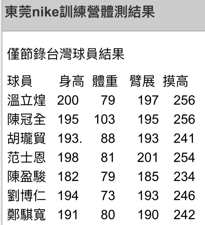 → jackman1002 : 如以T1體測數據,有四人身高在187~190cm,摸高都差 06/21 20:54