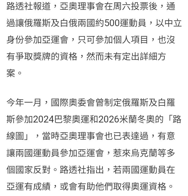 推 Eos : 其實一些比賽像網球這兩國一直都能個人名義參加 07/11 00:51