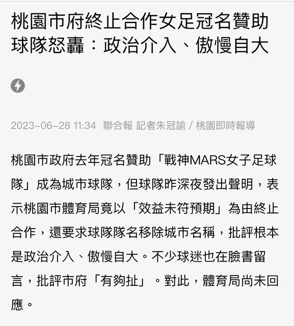 → Iraq : 剛翻了一下市府有聲明跟戰績無關是跟桃園連結不夠,07/15 09:54