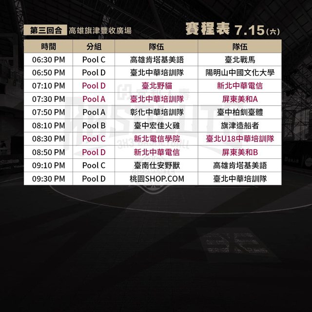 本日賽程表: