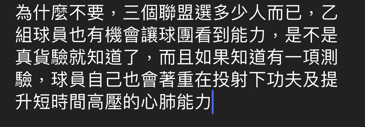 dodo212 : 說真的啦,職業球員本該要求自己,而不是要大家一起 07/23 19:15