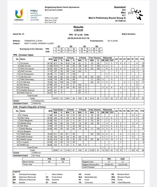 來源:世大運官網 https://reurl.cc/ZWdZ1a (補網址) ※ 發信站: 批踢踢實業坊(www.ptt.org.tw), 來自: 111.71.67.20 (臺灣) ※ 文章網址: https://www.ptt.org.tw/basketballTW/M.1690809596.A.A23