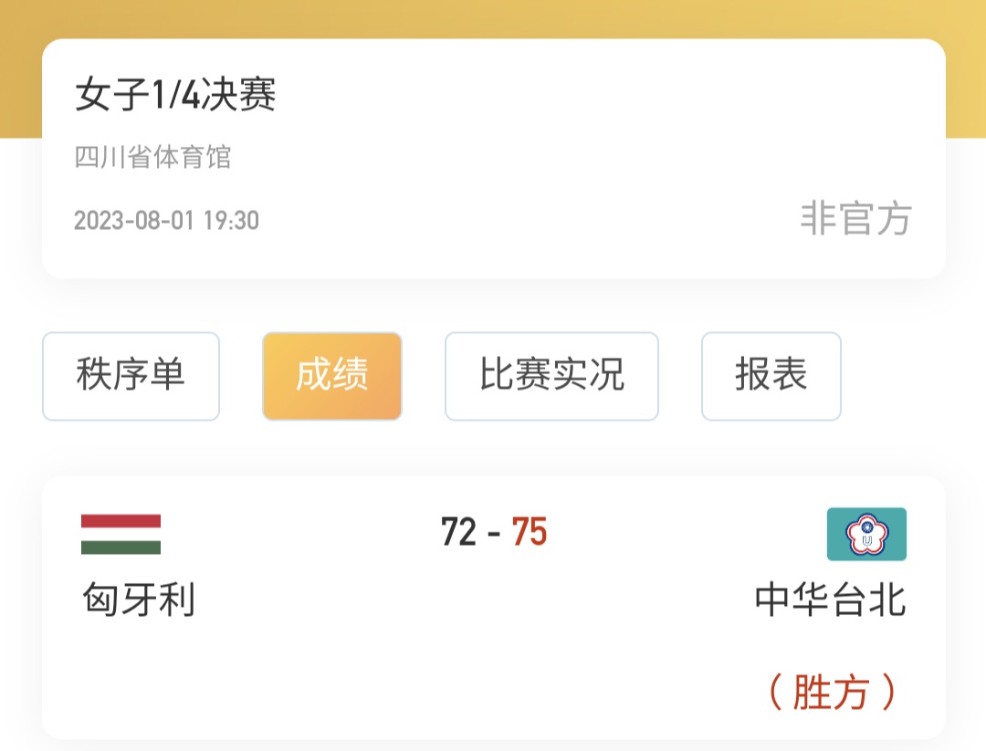 2023世大運女籃 球隊: 臺灣vs匈牙利 地點: 四川 時間: 19:30, 8/1 轉播: 文字轉播 https://tinyurl.com/5876sy5k 影像直播 名單: 先發: 羅蘋 / 卓敬 / 徐玉蓮 / 林蝶 / 彭曉彤 本區: 黃柔甄 許玟瑄 趙云楓 王竫婷 廖瑋晴 林妘樺 羅培甄 匈有: 一隻190+跟四肢180+ 看點: 1. 臺灣2017世大運是76:64 擊敗匈牙利 2. 很餓的匈牙利可否復仇? 3. 很匈的匈牙利妹子 4. 臺灣可否三連勝? 5. 影像轉播在哪裡? =============================== 為增加看球樂趣 首位猜對勝隊跟最接近勝分的100P 首位猜最接近臺灣最高分球員100P 我猜: 臺灣贏15分 林正(誤)林蝶20分 -- 推 hope951:有片無槍 片失其用 無片有槍 槍失真我 → hope951:有片有槍 登峰造極 無片無槍 天下無敵 -- ※ 發信站: 批踢踢實業坊(www.ptt.org.tw), 來自: 101.12.89.80 (臺灣) ※ 文章網址: https://www.ptt.org.tw/basketballTW/M.1690886002.A.A23