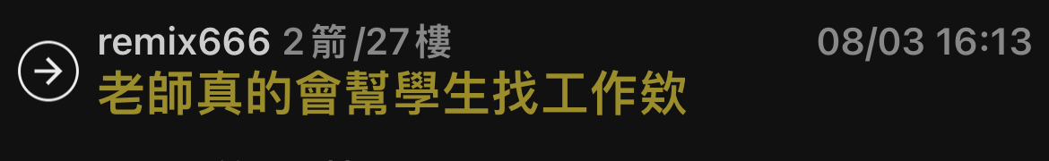 linyyggtt : remix666請問是哪個老師幫哪位學生找工作啊 08/03 17:15