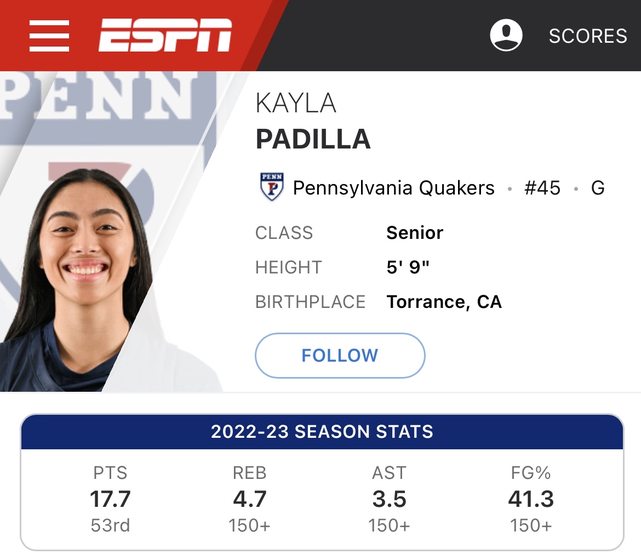 ESPN帳面數據接近18 + 5 + 3.5助,加上U Penn也不是弱隊,成色不錯