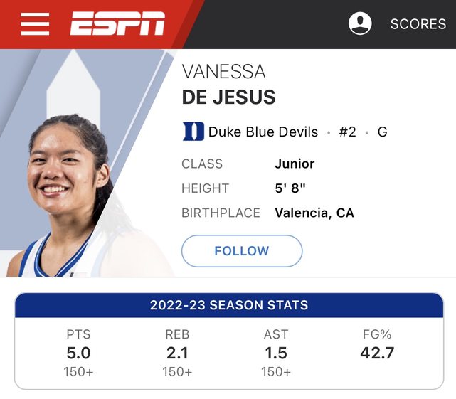 今年亞洲盃的主力替補後衛Ella Fajardo,高中時期就在美國,這季在紐澤西地區NCAA D