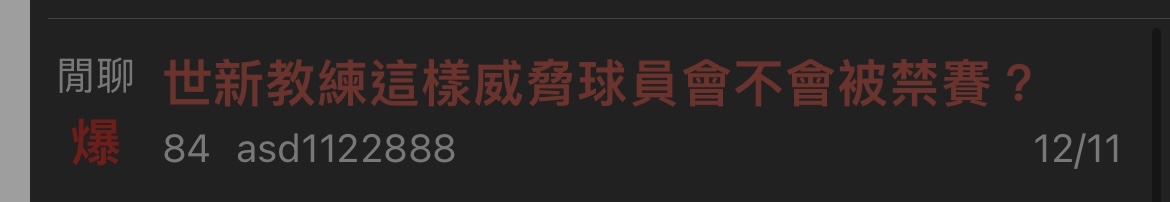 噓 Oloroso : 反觀世新某何教練在對手地盤威脅球員,那才是真的 09/07 15:49