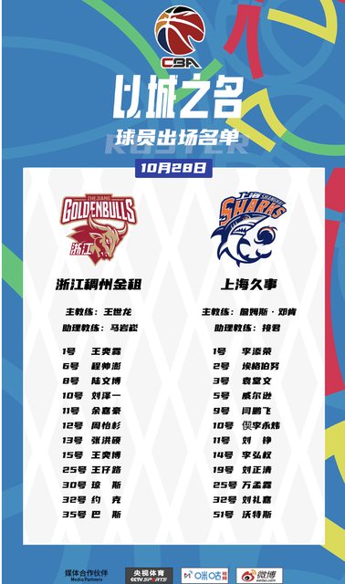 CBA 例行賽 10/28 賽程