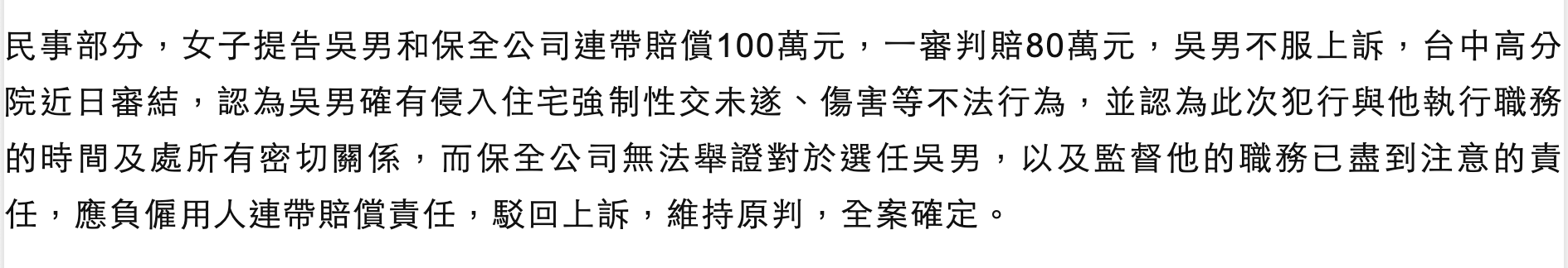 → usnavyseal : 台灣的案例: 僱用許男的台亞石油須付連帶賠償責任 11/22 10:33